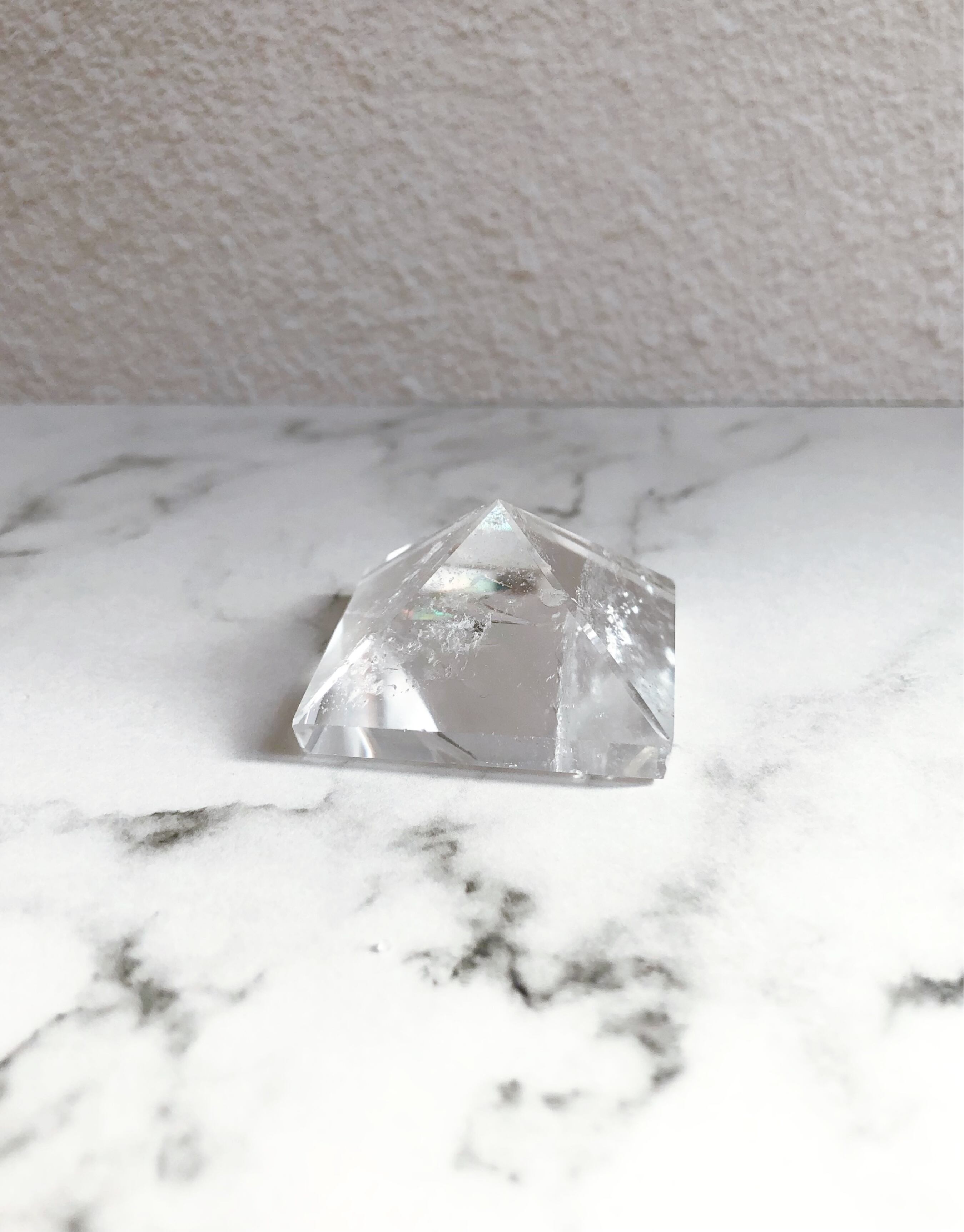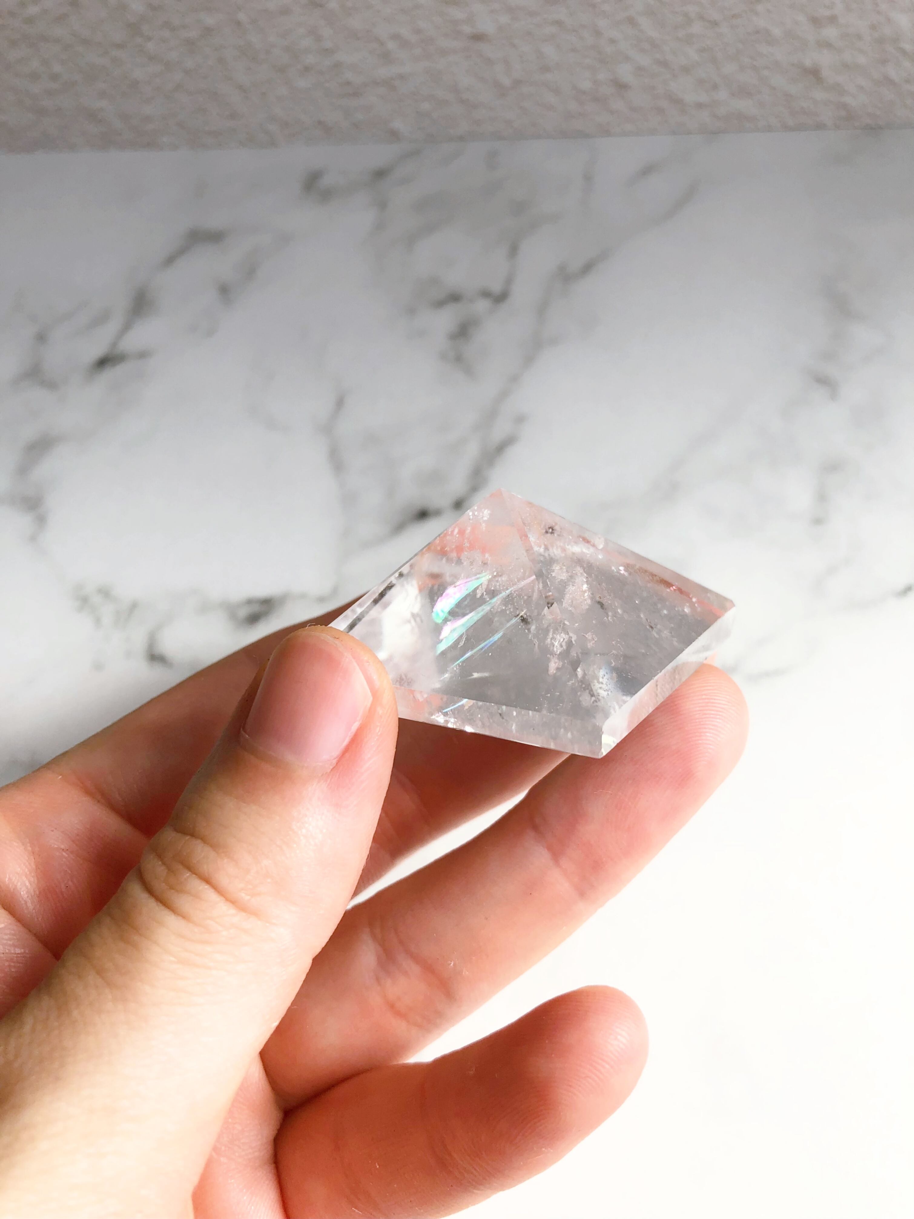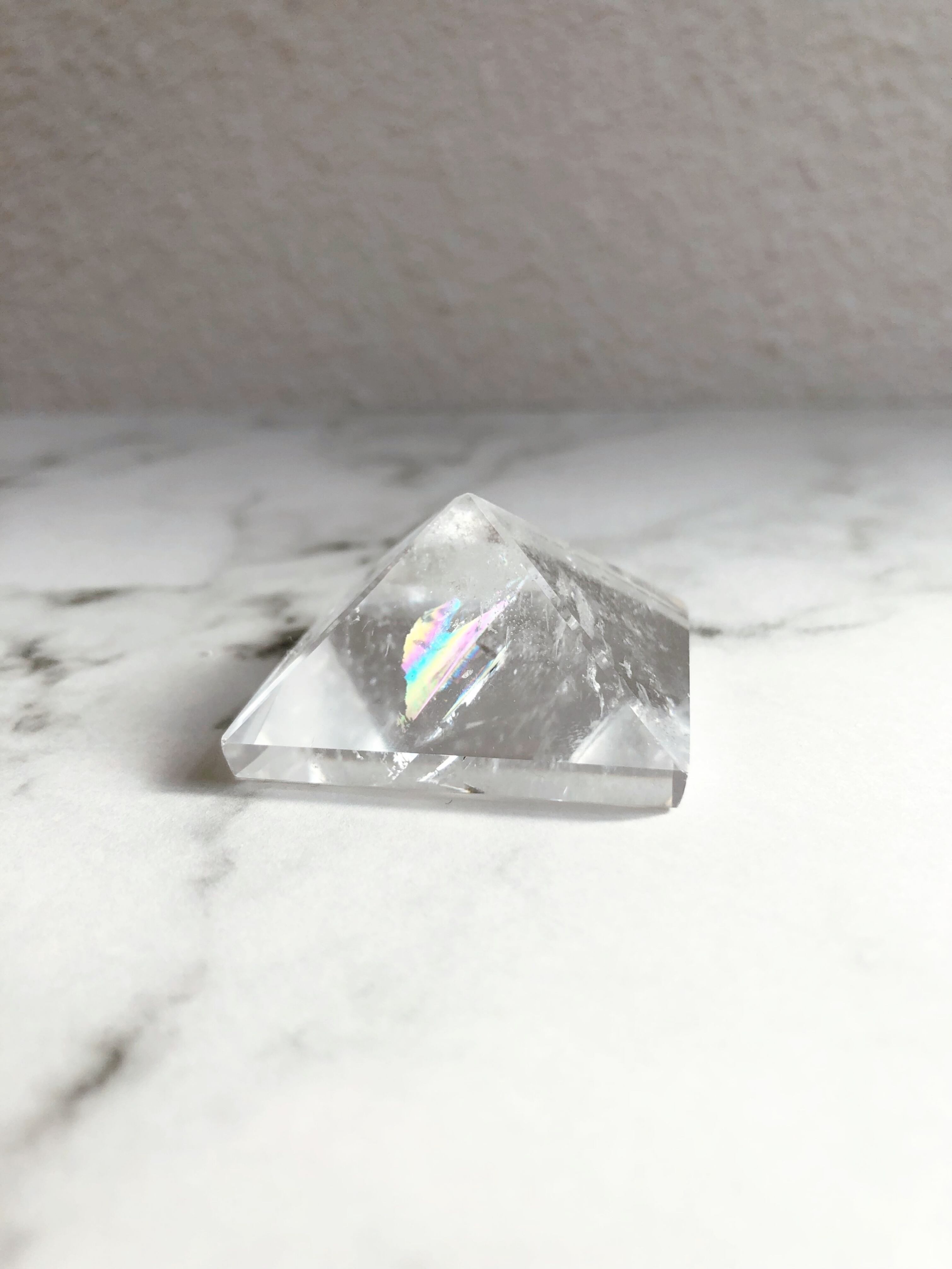 水晶 天然石|ピラミッド|レインボー入り|置き石 手のひらサイズ|一点もの